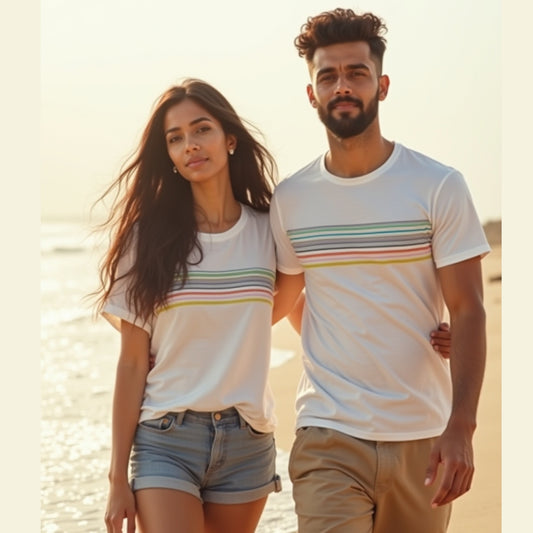 Colorful Striped Matching Couple T-Shirts – White